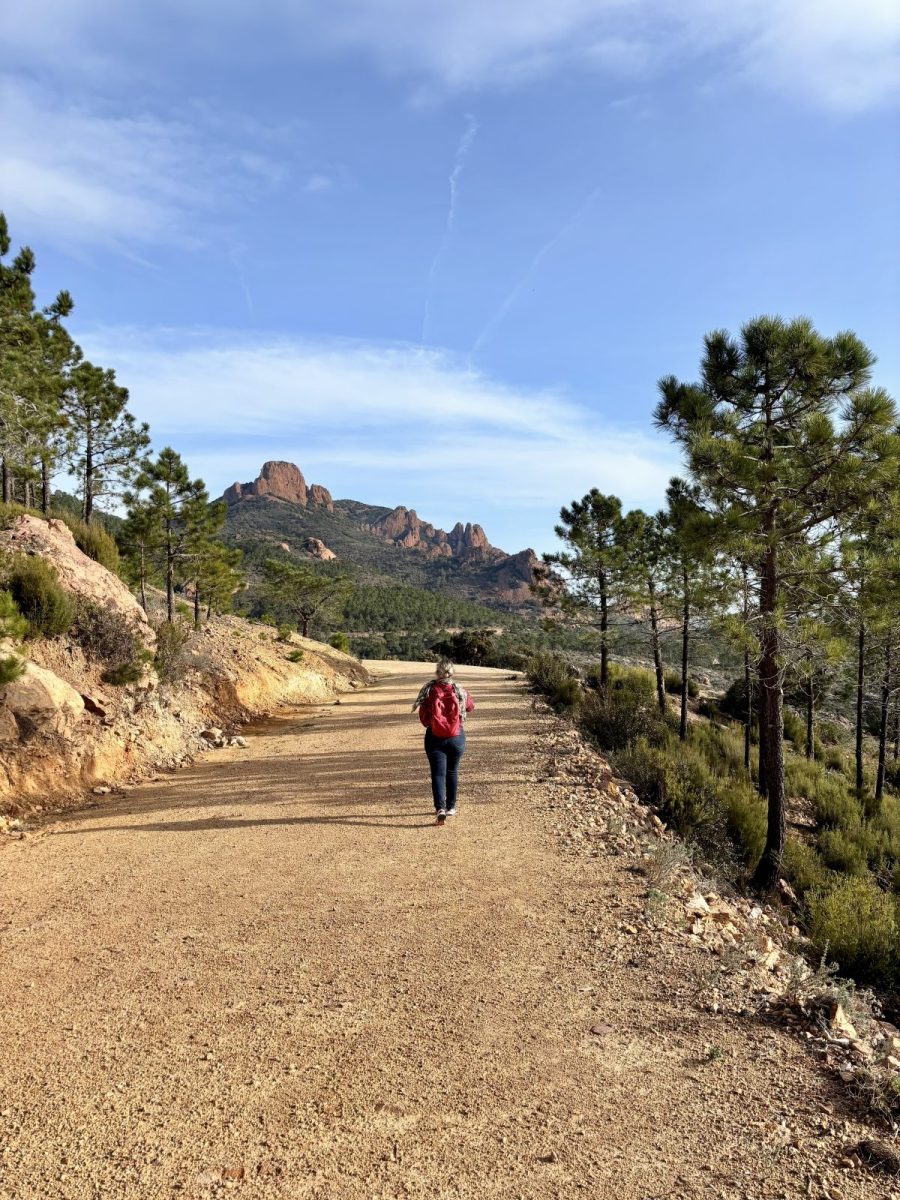 Après la barrière emprunter la piste pendant 1,2km. Celle-ci surplombe ls magnifiques paysages de l’Estérel, la mer, le viaduc d’Anthéor et, dans votre dos, les sommets emblématiques du Cap Roux.