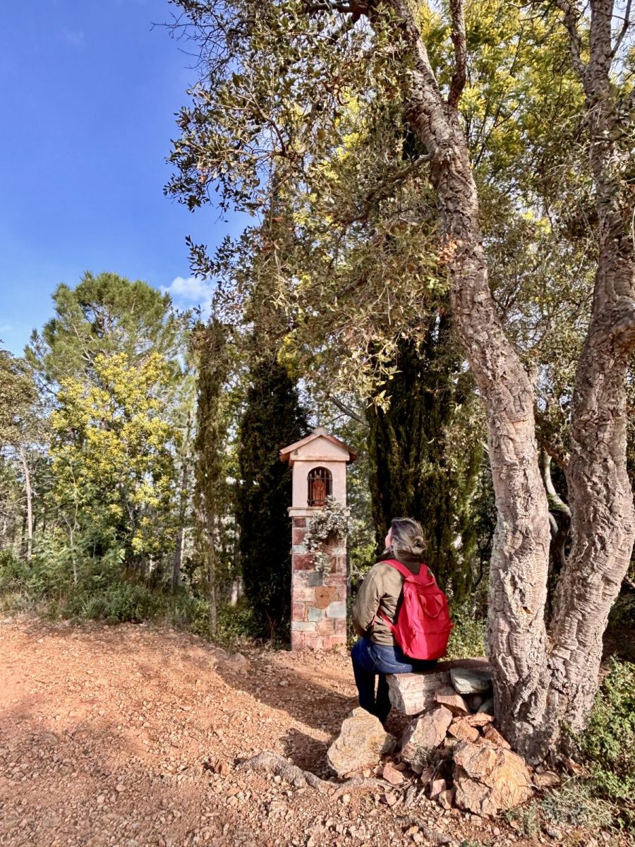 Vous arrivez au carrefour de l’oratoire Saint Honorat, prenez à droite devant l’oratoire puis quittez immédiatement la piste pour un petit sentier sur votre gauche.