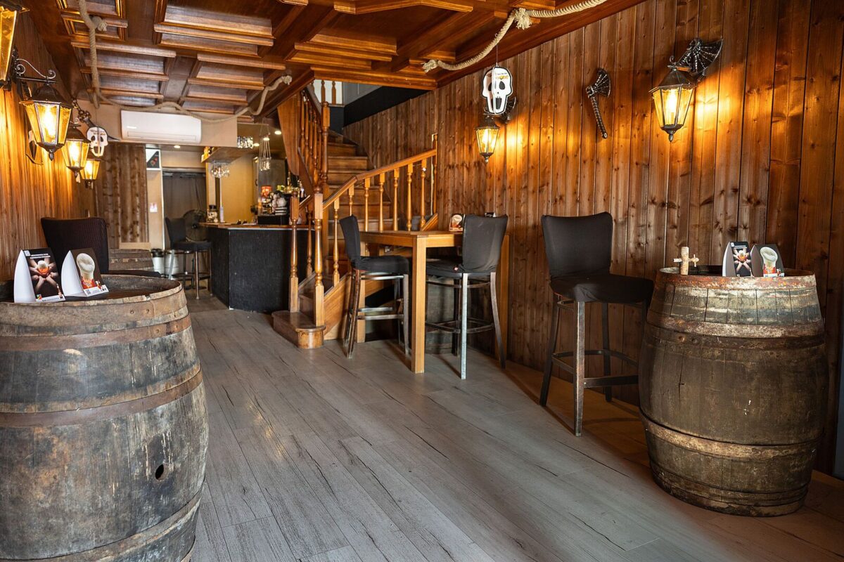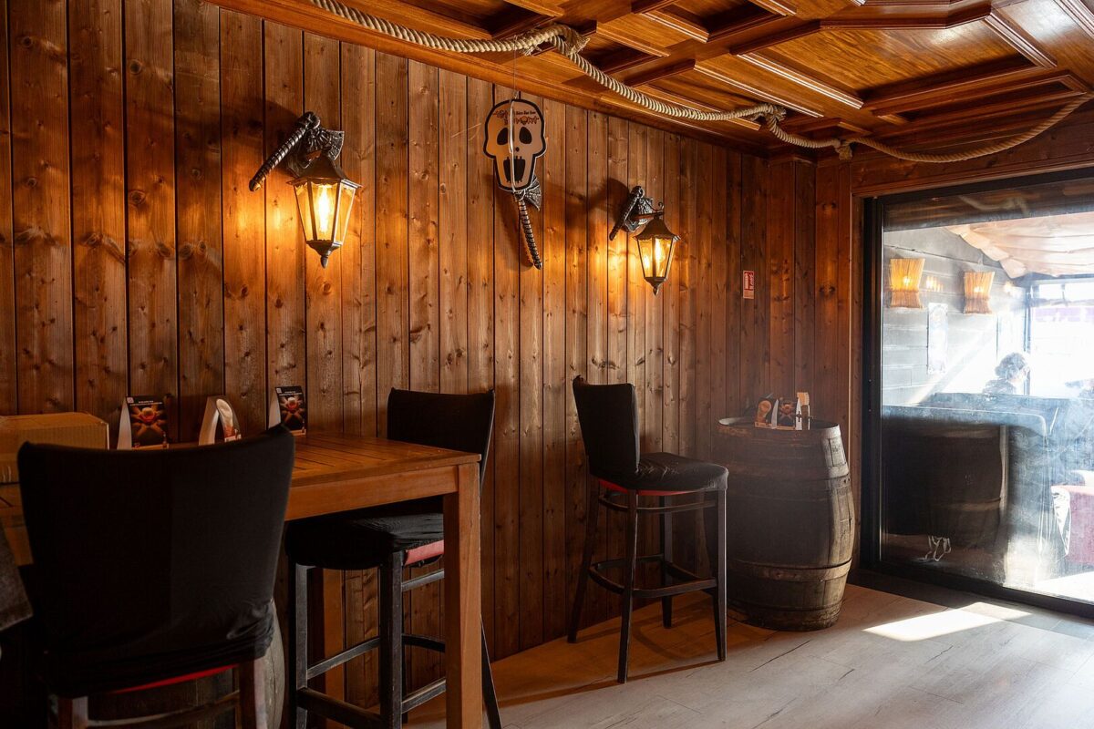 Le Black Pearl, à l’esprit pirate : boiseries, plafonds sculptés, tonneaux anciens, cordages et lanternes murales plongent les visiteurs dans l’atmosphère d’un vieux navire.
