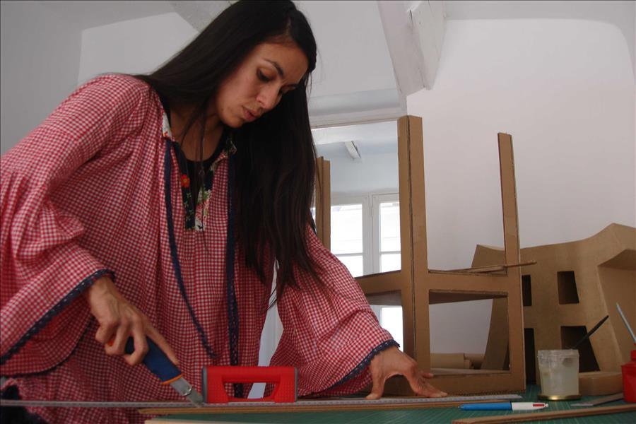 Isabelle Autenzio est "cartonniste" : elle conçoit et fabrique du mobilier et autres objets de décoration en carton.